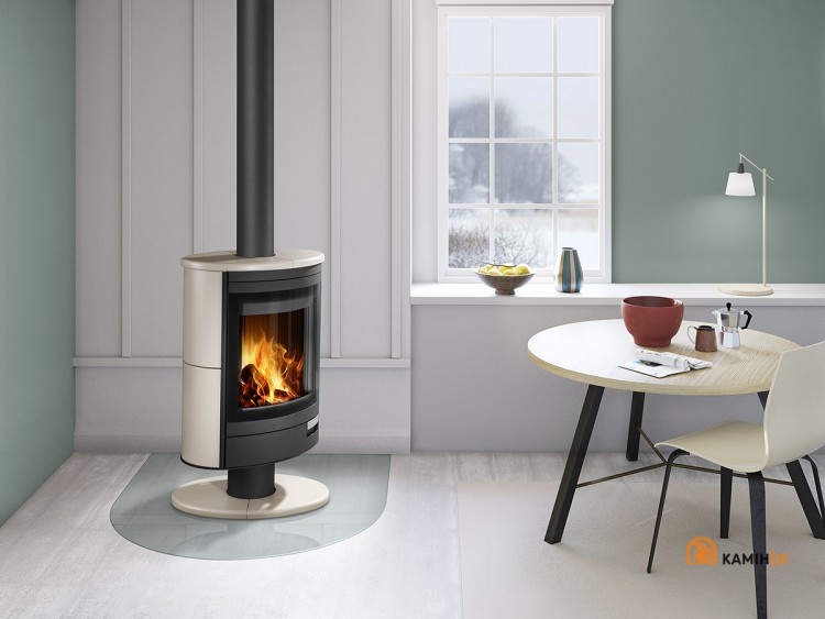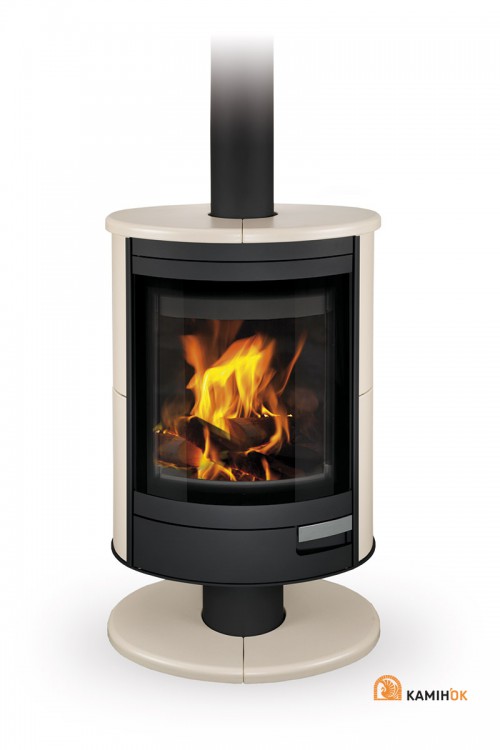 Піч-камін чудово підійде до сучасного інтер’єру. Піч-камін обладнано системою ЦПП – центральної подачі зовнішнього повітря. У стандартному варіанті можна підключити верхнє відведення продуктів згоряння. Скло дверцят омивається завдяки подаванню вторинного повітря, тому забруднення не осідають на склі. Камеру згоряння облицьовано шамотною плиткою. Подавання первинного та вторинного повітря можна регулювати одним елементом управління. Поворотна топка дає можливість спостерігати за вогнем з різних боків.